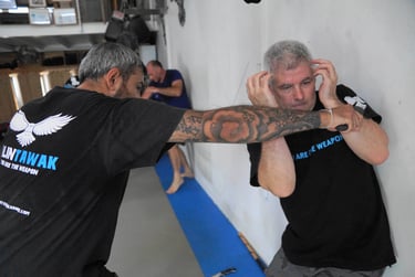 Nos entrainements sont une synthèse des différents arts martiaux de combat à mains nues ou avec une arme. Le principe est de s'adapter pour devenir efficace avec celui-ci.